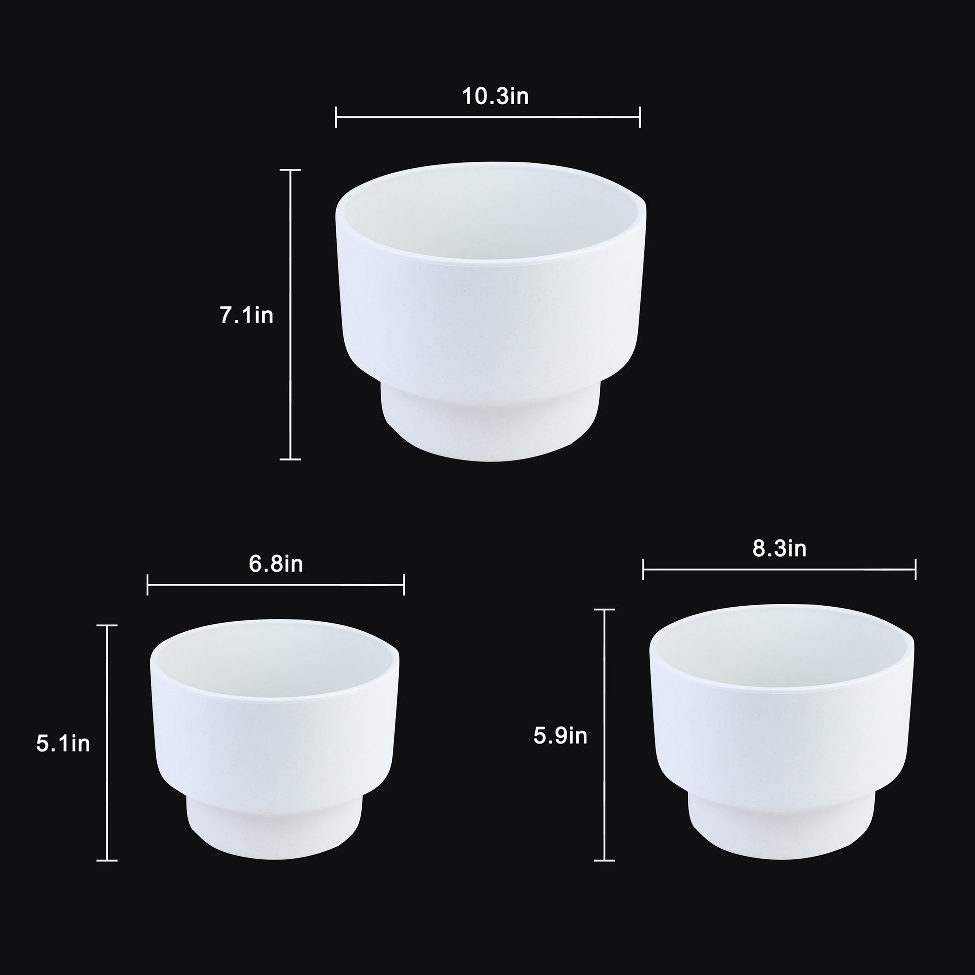 3-Piece White Plastic Planter Pot Set – Modern Pedestal Base