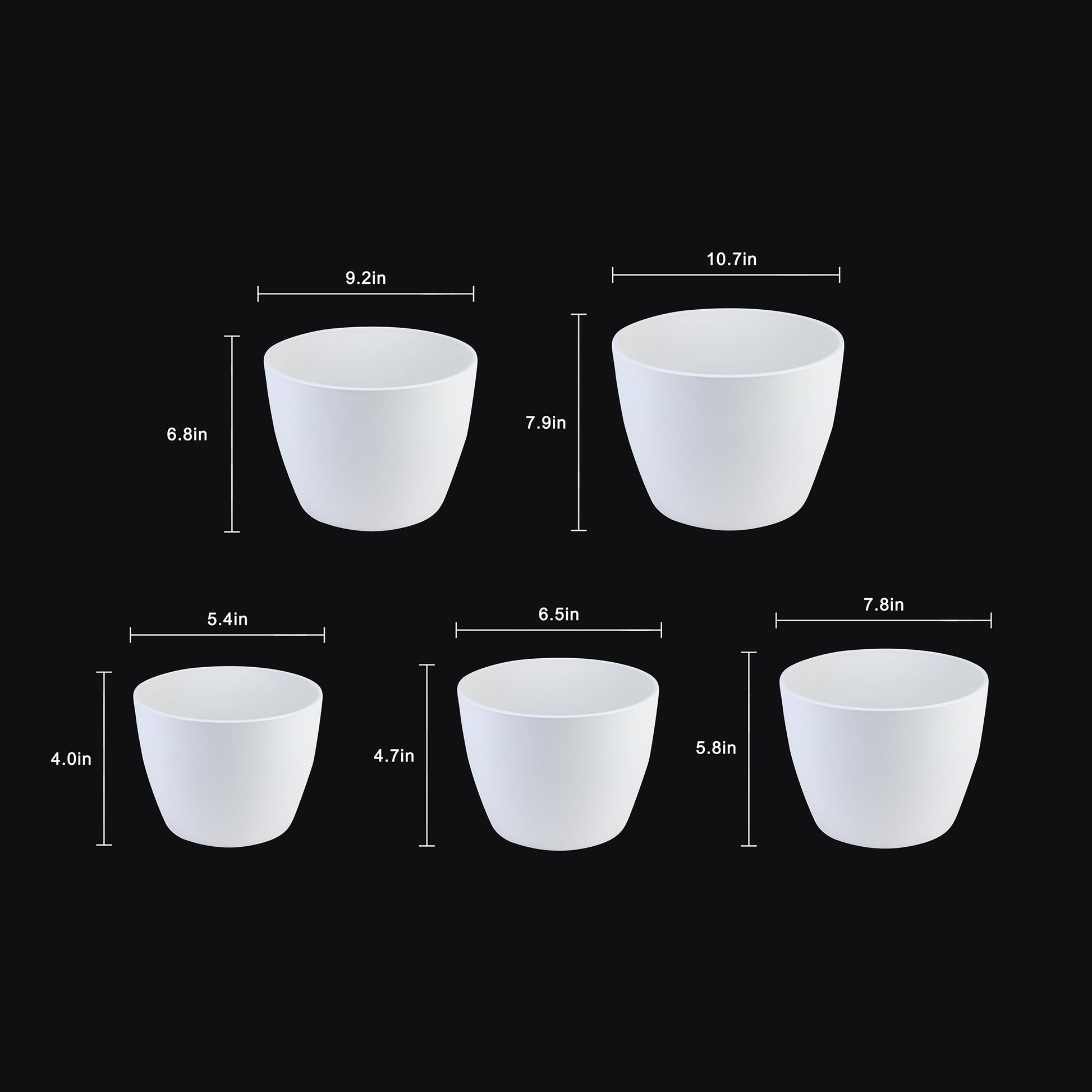 5-Piece White Plastic Planter Pot Set – Modern Round Design